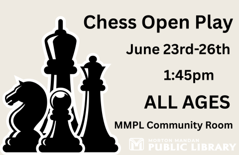 Stop by the MMPL Community Room to play a round of one of the most iconic games of all time! Following our youth chess camps, the Community Room will be opened up to the public for open chess play. Stop by and join in the fun!